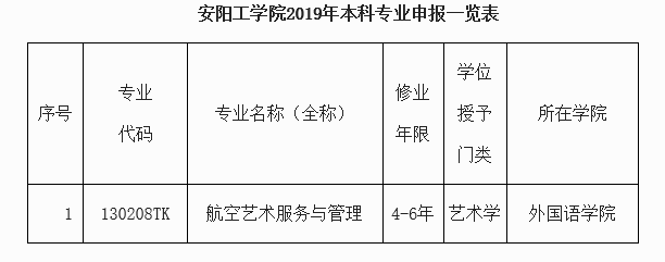 根据《教育部高等教育司关于2019年度普通高等学校本科专业设置工作的通知》(教高司函[2019]30号)文件要求,学校于近期组织专家对申报材料进行了审议,现决定我校新专业申报为:航空服务艺术与管理,共一个专业。现将该专业的申报材料在校园网首页公示,网址为:http://www.ayit.edu.cn/,公示期为:2019年7月18日——7月26日。公示期间,任何部门和个人对该专业的申报持有异议,可以书面形式向教务处提出。部门提出的异议,须在异议材料上加盖本部门公章,并写明联系人工作部门和电话;个人提出的异议,须在异议材料上签署真实姓名,并写明本人工作部门、通讯地址和电话。不符合上述要求的异议,不予受理。