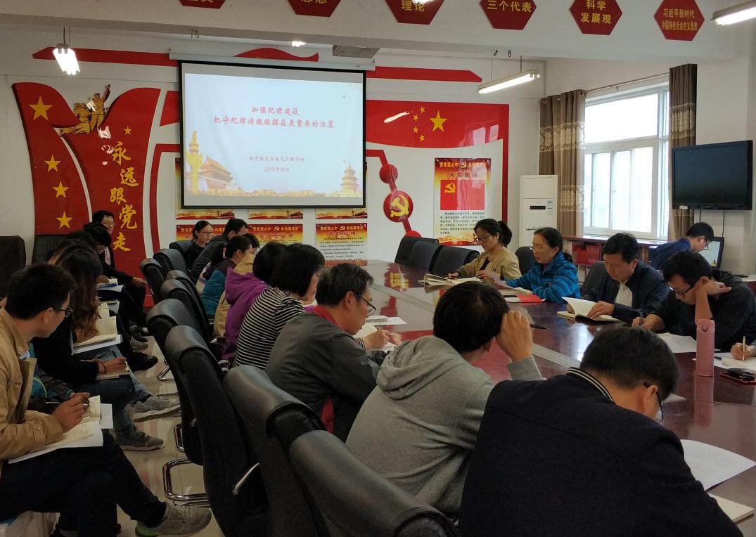 10月11日,电子信息与电气工程学院教工党支部召开了以“加强纪律建设”为主题的组织生活会,学院全体教师党员参加了会议。