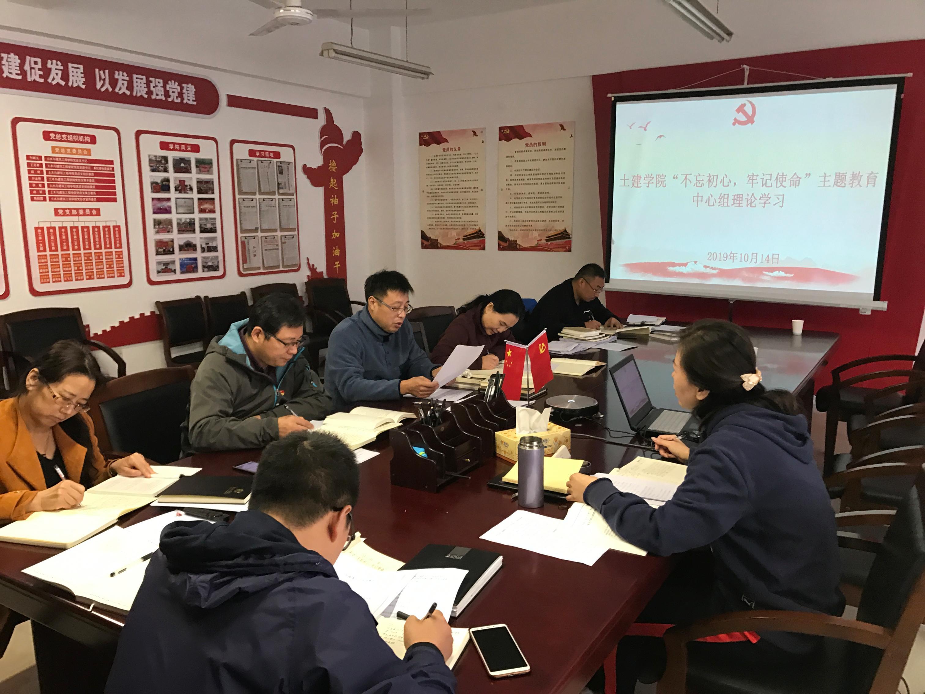 10月14日,土木与建筑工程学院理论学习中心组在A09-223会议室组织“不忘初心、牢记使命”主题教育第三次集中学习研讨,学院党总支书记王月本主持会议,中心组全体成员参加学习研讨。
