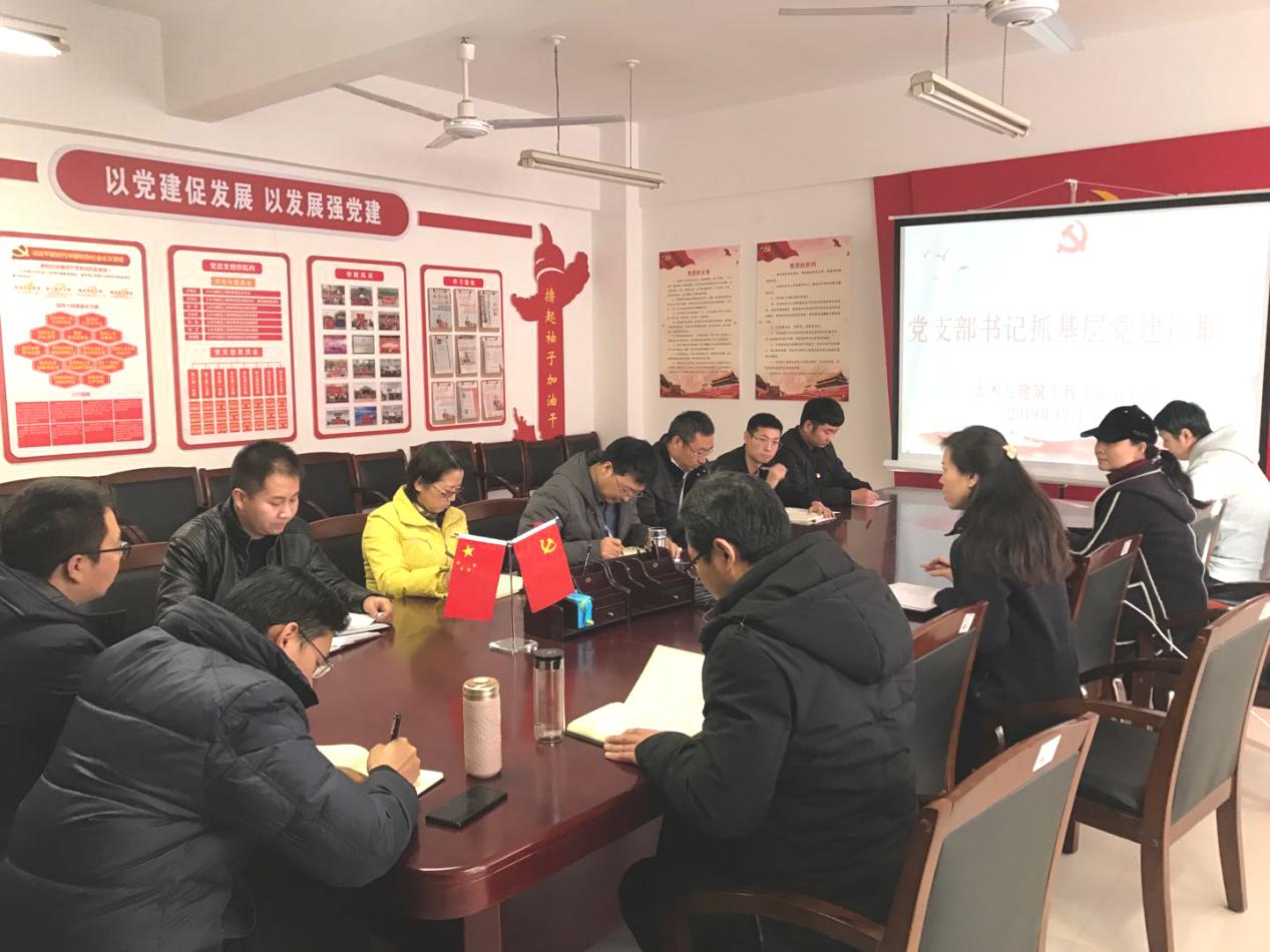 12月26日下午,土木与建筑工程学院党总支在A09-223党员活动室召开党支部书记抓基层党建述职会,党总支委员与各党支部书记、部分教师代表参加会议。