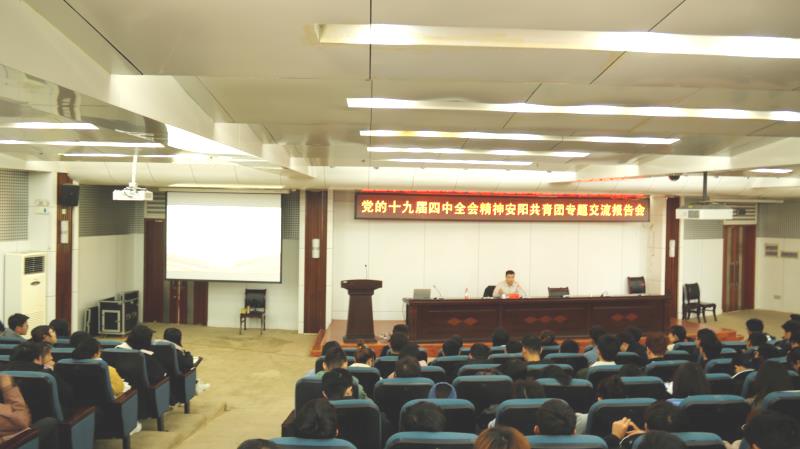 12月26日下午,党的十九届四中全会精神安阳共青团专题交流报告会在我校学术报告厅举行,安阳团市委书记元浩作了题为《党的十九届四中全会精神宣讲》的专题报告,团市委相关工作人员、校团委全体工作人员、各学院团总支书记(负责人)和学生代表260余人参加报告会,校团委书记王斐主持报告会。