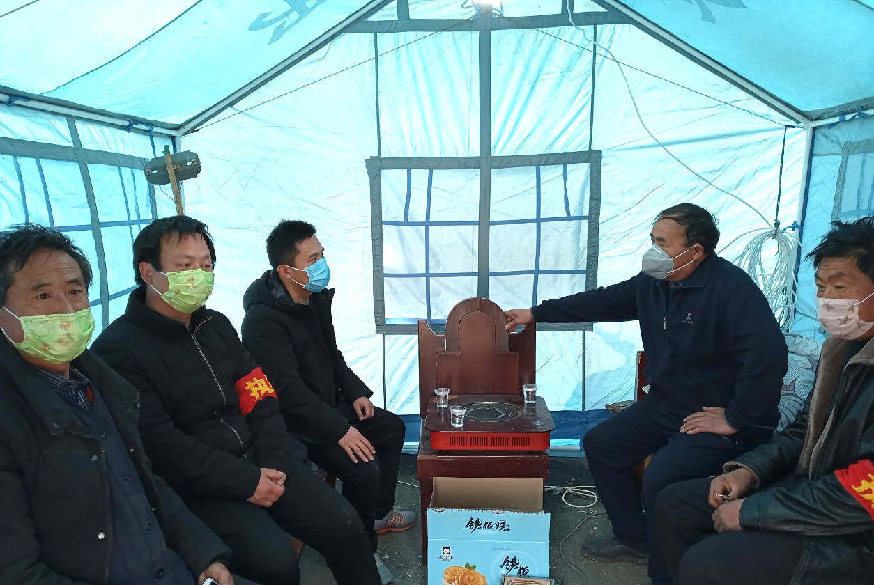 驻村第一团支书张朋伟(左三)与村干部一起在防控卡点值守