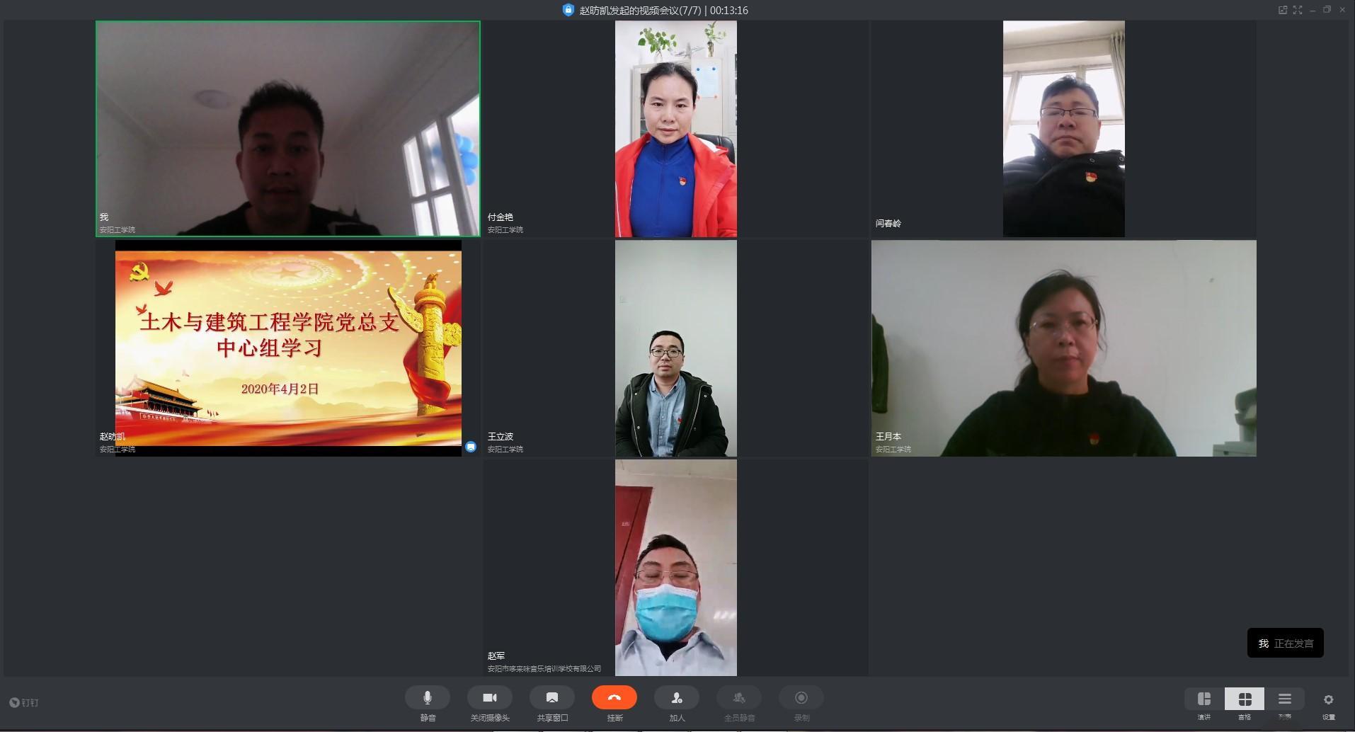 为进一步提高思想认识和政治理论水平,推动疫情防控、学生开学准备等各项工作深入进行,4月2日,土木与建筑工程学院党总支中心组通过钉钉会议召开了线上政治理论学习会议,学院党总支书记王月本主持会议并讲话,中心组全体成员参加学习。