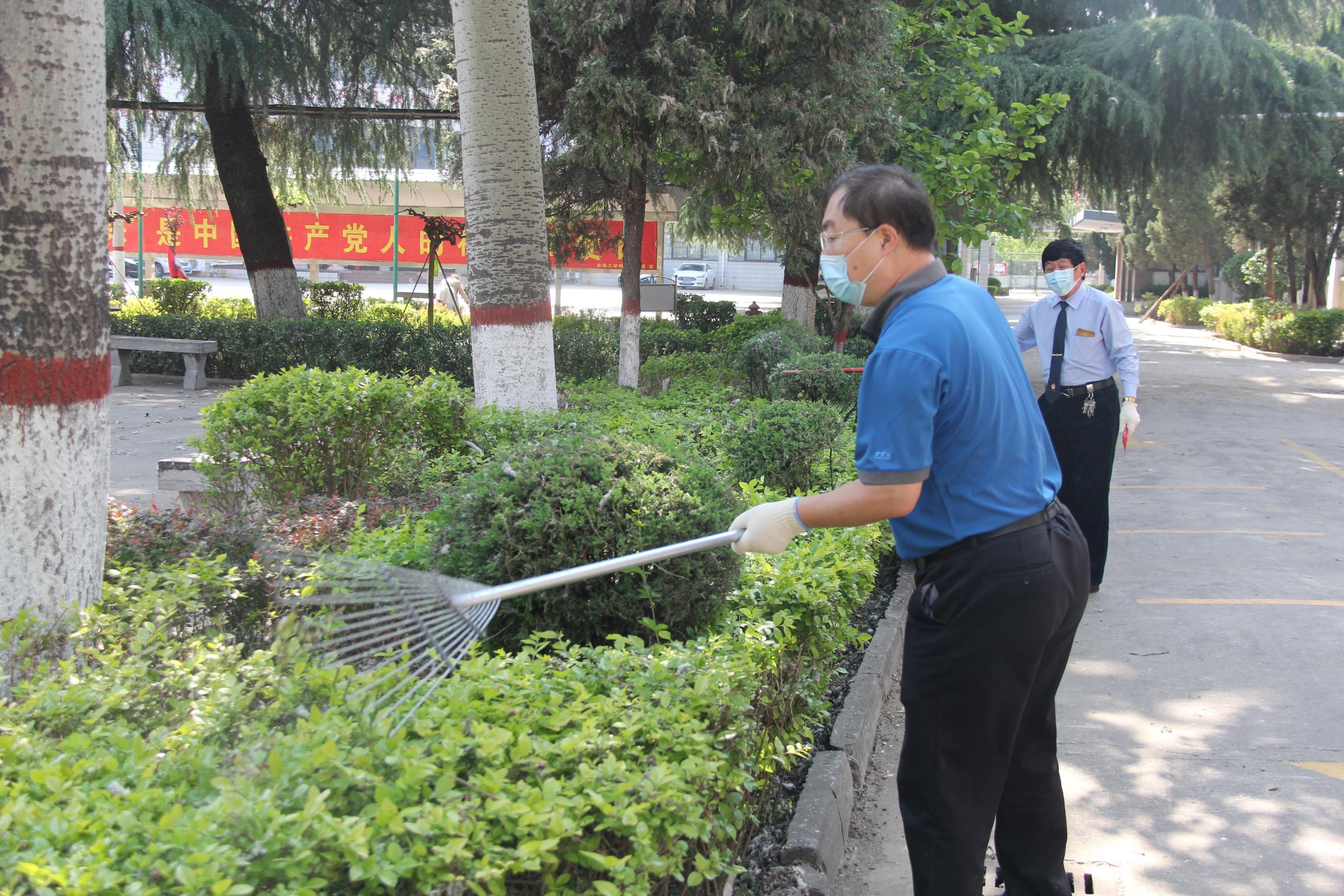 4月28日下午,继续教育学院(洹滨校区)党总支组织全体党员、入党积极分子开展了“爱国卫生月”主题党日活动,对校园环境进行了认真清洁和全面整治。