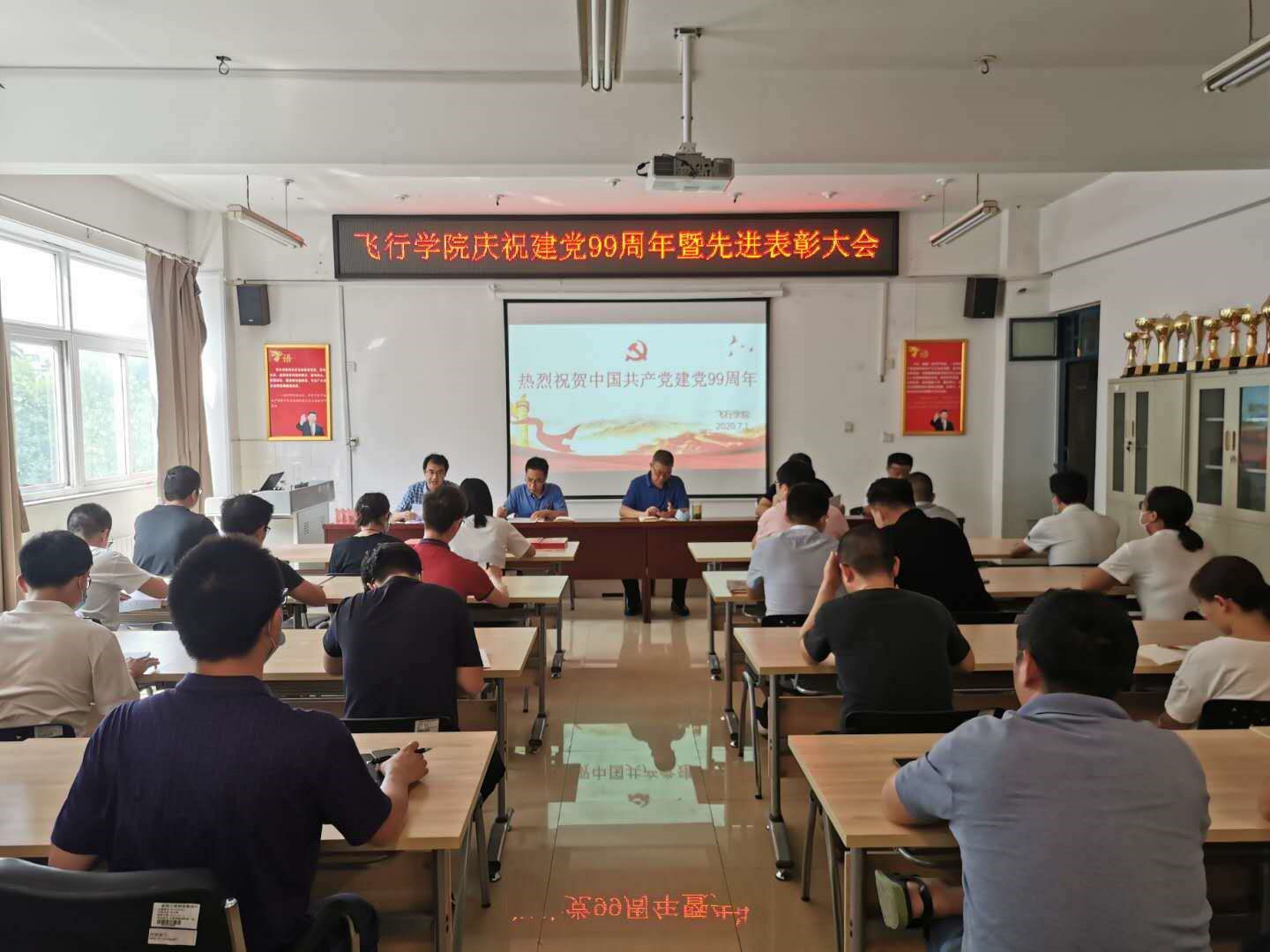 7月1日,飞行学院在党员活动室召开庆祝中国共产党成立99周年暨先进表彰大会,学院领导班子成员和全体党员教师参加会议。