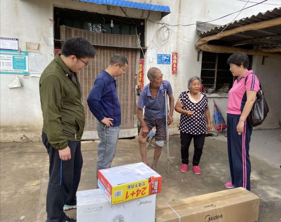 在刘闵城村,霍红霞看望了我校驻村干部郭强、张林、王超英、申亚峰,详细了解村党支部班子建设、党员培训及党支部作用发挥情况,询问了驻村干部的工作、生活情况,并向他们赠送了党建图书50余本。随后,霍红霞一行在驻村干部的陪同下,看望慰问了五保户刘保堂一家,向他们赠送了落地扇、冷风机等生活用品,并鼓励他们要坚定脱贫的信心,保持乐观向上的生活态度。