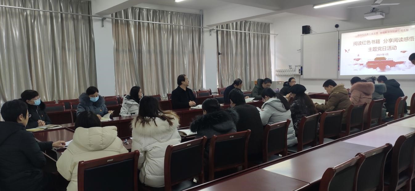 1月8日上午,洹滨校区教工党支部和继续教育学院教工党支部共同举办“阅读红色书籍 分享阅读感悟”主题党日活动,全体支部党员参加活动。