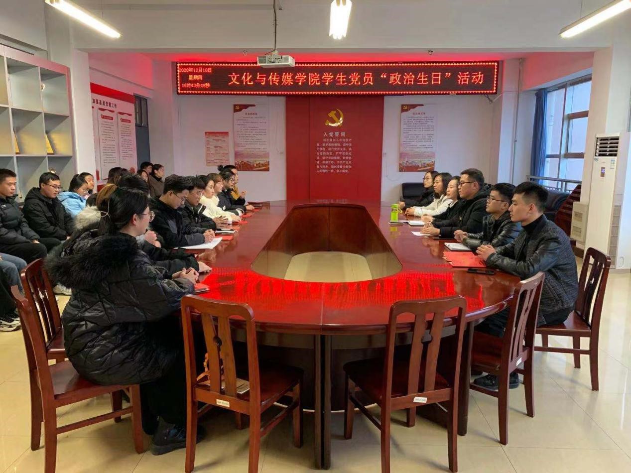 为强化党员的身份意识,提高党员的党性修养,12月10日下午,文化与传媒学院为新发展的学生党员举办“集体政治生日”活动。党总支书记张琳、副书记许华珂、学生支部书记、党员教师代表以及新发展的9名学生党员参加活动。