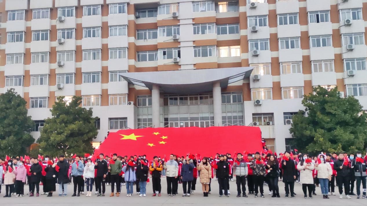 早上7点10分,校团委在主教学楼前举行升旗仪式,各学院学生代表200余人参加活动。升旗仪式结束后,现场学生摆出“一二·九”字样,共同纪念那场声势浩大的爱国运动,缅怀先辈们的爱国精神。
