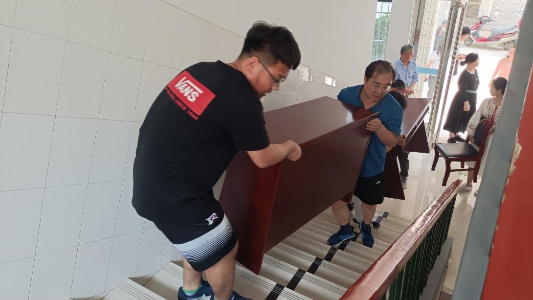 活动中,校区领导班子成员带头参加劳动,大家同心协力,克服重重困难,不畏天气炎热,不怕苦、不怕累,共同将教学楼一楼70多张桌子、100多把椅子搬到三楼的四个教室,布置成专升本自习室,为学生营造温馨清静的学习环境。