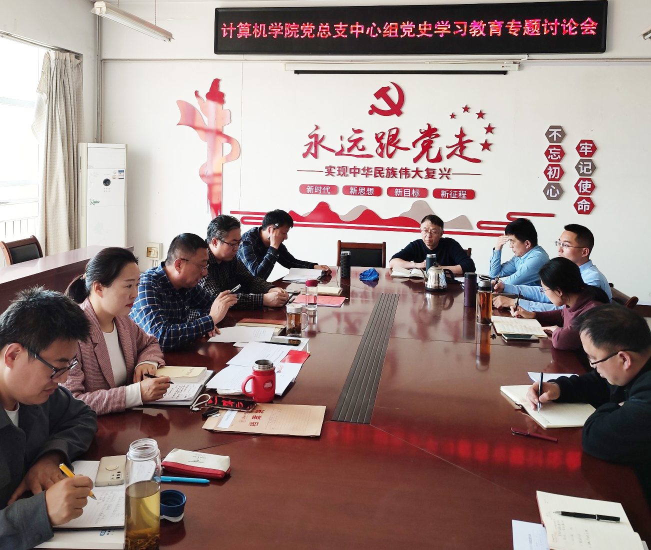 4月19日下午,计算机科学与信息工程学院党总支召开中心组(扩大)会议,集中学习党史有关理论知识,并开展专题研讨,中心组全体成员、各党支部书记参加会议。