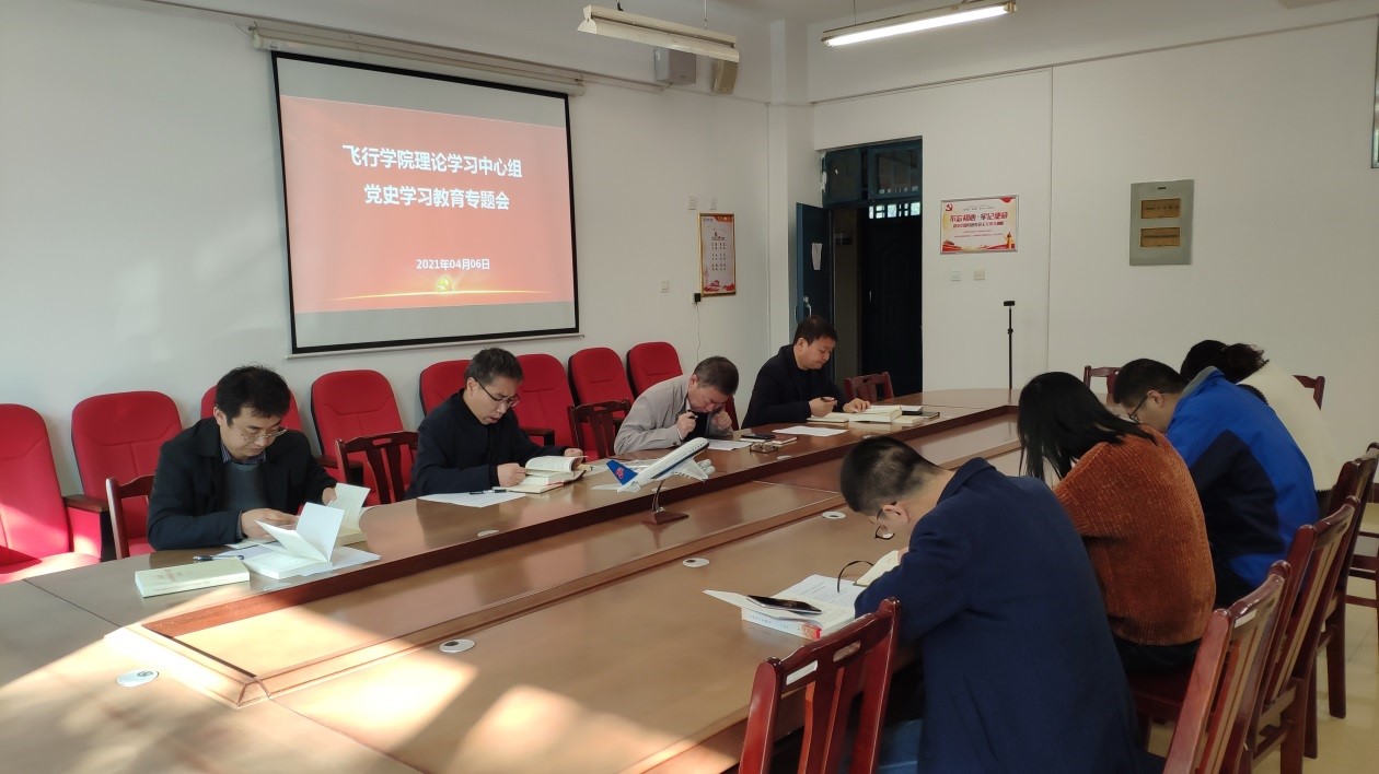 4月6日上午,飞行学院党总支理论学习中心组召开党史学习教育专题(扩大)会议,集中学习党史有关理论知识,中心组全体成员、各党支部书记参加会议。