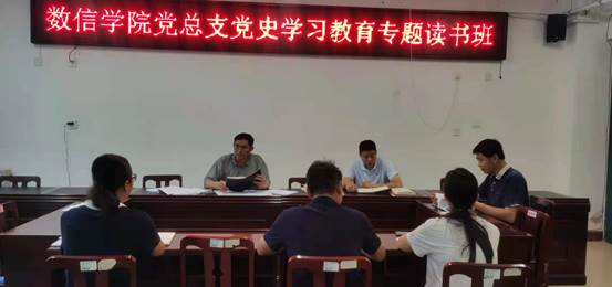 6月11日,数信学院党总支在A14-204会议室举办党史学习教育专题读书班,学院党总支中心组成员参加学习。