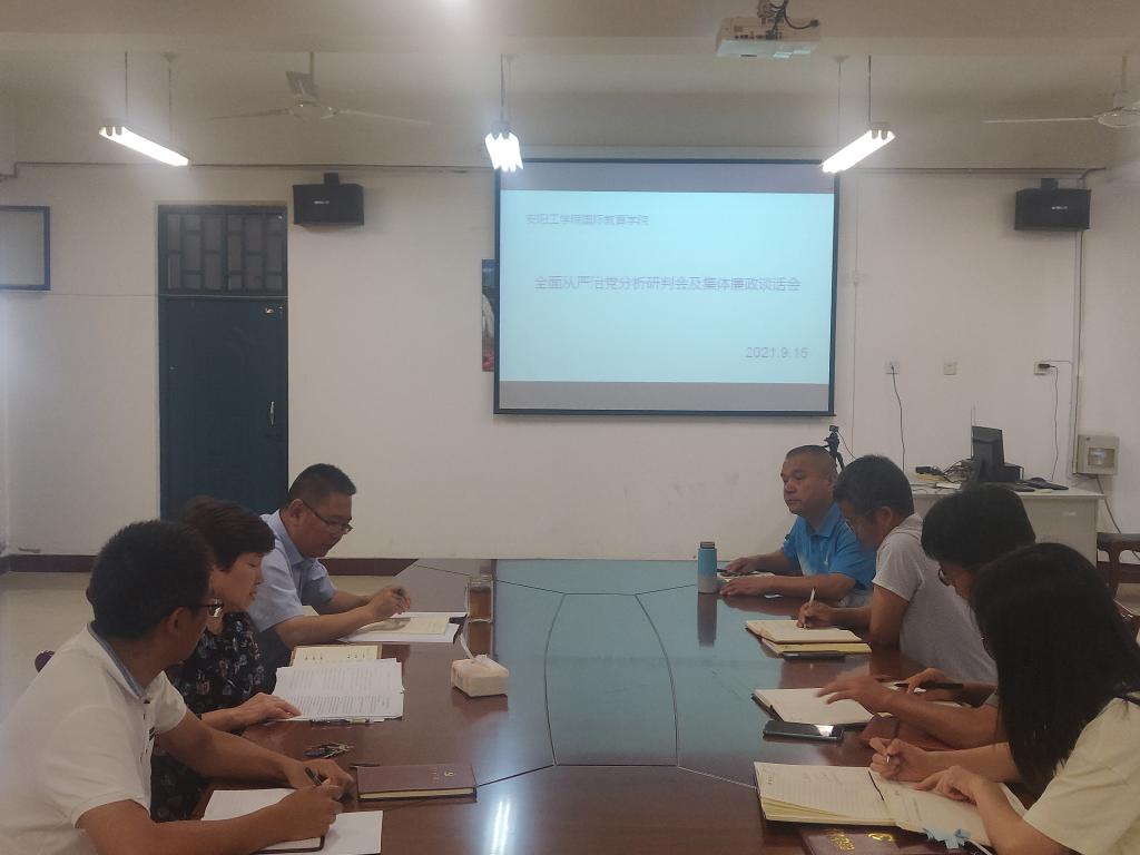 9月15日下午,国际教育学院党总支召开全面从严治党分析研判会暨集体廉政谈话会,全体教职工参加会议,党总支书记于艳红主持会议。