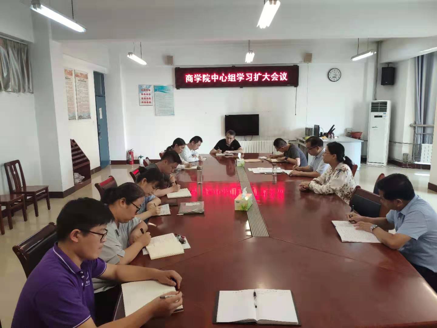 9月15日下午,商学院党总支在A11-319召开理论学习中心组(扩大)会议,中心组成员、各党支部书记参加会议,党总支书记赵晓晶主持会议。