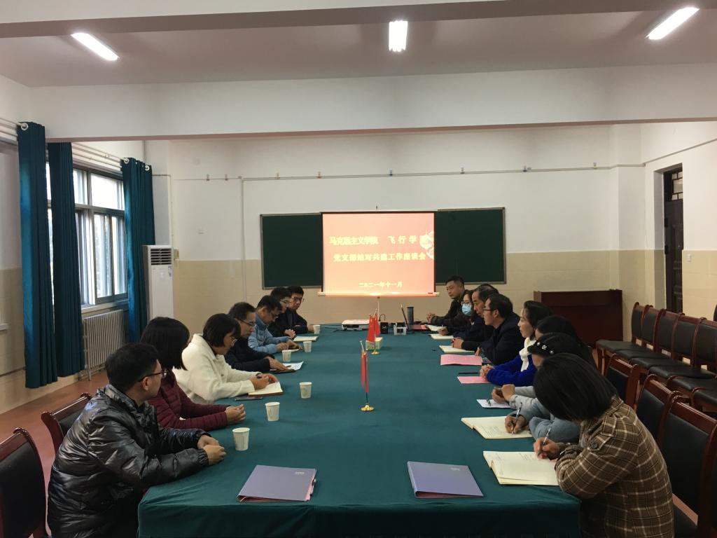 11月10日下午,马克思主义学院与飞行学院召开党支部结对共建工作座谈会暨结对共建签字仪式。各学院党总支书记、副书记,各党支部书记参会。马克思主义学院院长杨利英主持会议。