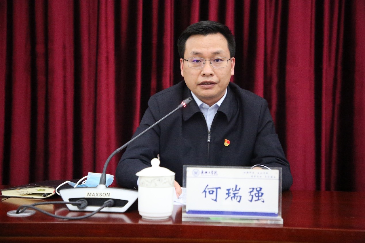 会上,校长景国勋对学校疫情防控工作进行安排部署。一是要严落实,从严从实贯彻疫情防控要求。严格执行封闭管理和请销假制度,坚持谁审批、谁负责,非必要不离校,非必要不离安;规范清洁消杀,坚持人、物、环境同防,多病共防;严控校内聚集性活动,各类活动提倡线上举办;认真做好核酸检测,全体师生和各类人员严格落实定期抽检全覆盖;强化思想政治引领,加强学生心理疏导,发挥思政课主渠道作用,做好育人工作;加强值班值守,严格24小时行政值班和辅导员进驻学生公寓等制度,做好紧急信息上报和突发应急事件处置。二是要补短板,认真排查堵塞疫情防控漏洞。严格校园出入管理,实行校园提级管控,坚持师生无差别管理,严格执行审核、测温、亮码亮卡等制度,守好第一道防线;精准掌握师生疫情防控信息,做到一人一档,不漏一人;加强后勤服务保障,充分储备各类物资,增设生活服务设施,聚焦急难愁盼问题,确保师生生活稳定;坚持良好卫生习惯,落实好戴口罩、勤洗手、常通风、“一米线”等防控措施;强化师生教育引导,不信谣、不传谣、不造谣,切实做到科学防护、动态可控。三是要强弱项,切实提升疫情防控能力。坚决克服麻痹思想,纠正思想认识偏差,提高疫情防控工作的敏感度;加强应急演练,做好平急转换,提高疫情防控方案的执行度;强化组织动员,扩大教职工志愿服务的参与度,筑牢疫情防线,确保学校安全。