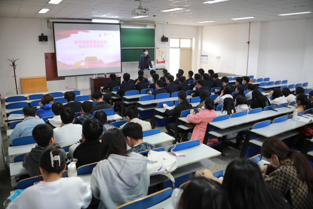 课上,吴建军对比了新中国成立前后体育事业发生的翻天覆地变化,系统地介绍了党领导下的新中国体育事业取得的长足发展和辉煌成就;讲述了北京冬奥会成功申办的历程以及在新冠病毒肆虐等复杂环境下如期圆满举办的概况,详细阐述了“胸怀大局、自信开放、迎难而上、追求卓越、共创未来”的北京冬奥精神;宣讲了习近平总书记在庆祝中国共产主义青年团成立100周年大会的重要讲话精神。