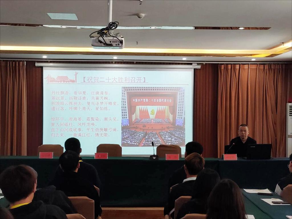 开班仪式上,洹滨校区、明德书院院长康博作开班动员讲话,以《深入学习宣传贯彻党的二十大精神在推进中国式现代化新征程中贡献青春力量》为题,他从“把握精神实质,全面领会党的二十大报告核心要义;强化党章意识,切实增强维护核心、维护党中央权威的政治自觉、思想自觉和行动自觉;做有理想、敢担当、能吃苦、肯奋斗的新时代青年,在推进中国式现代化新征程中贡献青春力量”三个方面,就如何深入学习宣传贯彻党的二十大精神做了专题辅导;党总支副书记赵浩婕宣布培训班主要日程,强调培训纪律要求;党总支书记王卫民为培训班授旗。
