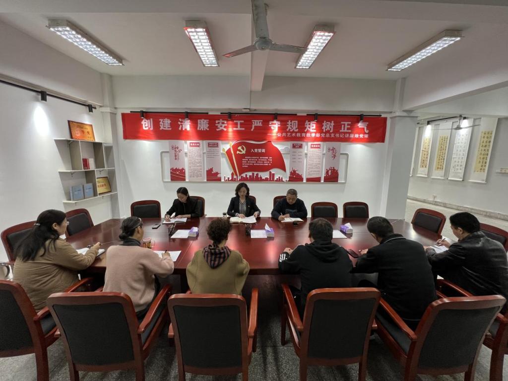 4月7日上午,公共艺术教育教学部党总支书记王斐在B02-311会议室讲廉政党课。