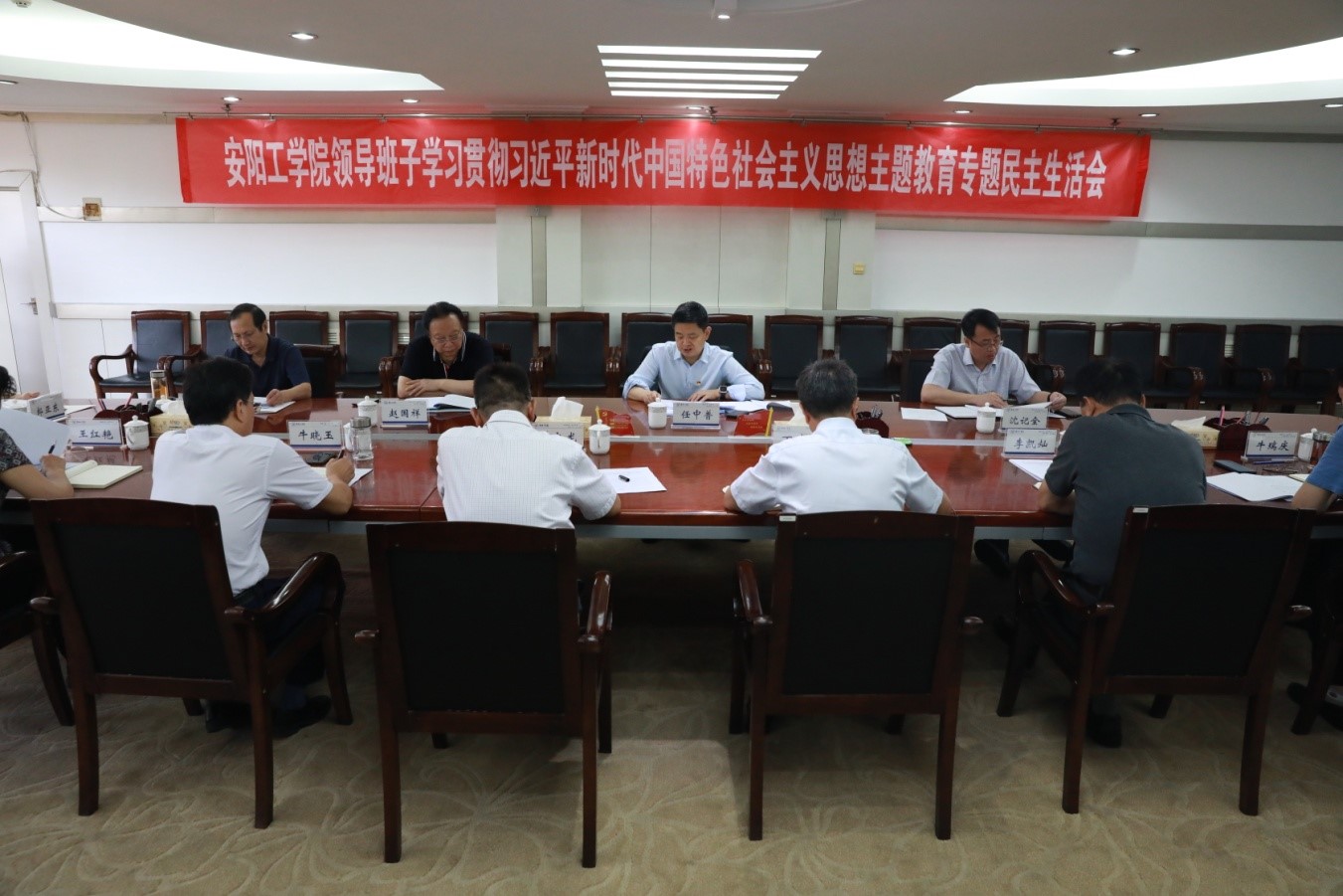 8月29日上午,我校召开领导班子学习贯彻习近平新时代中国特色社会主义思想主题教育专题民主生活会。省委第二十六巡回指导组组长、河南师范大学原党委书记赵国祥,副组长、鹤壁市政协副主席张国富,指导组成员郎亚东、闫博到会指导。校党委书记任中普主持会议并讲话,省委第二十六巡回指导组组长、河南师范大学原党委书记赵国祥作点评讲话。