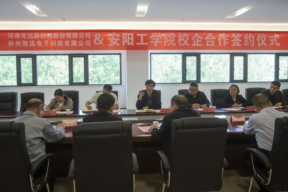 5月11日,校工会主席牛瑞庆带队赴林州致远电子科技有限公司和河南光远新材料股份有限公司开展访企拓岗活动,招生就业处副处长茅杰、材料科学与工程学院党总支书记吕有军、院长宋海香、副院长王艳飞参加活动。林州市副市长张洪涛、红旗渠经开区党工委委员裴社奇、林州致远电子科技有限公司董事长李广元、河南光远新材料股份有限公司董事长李志伟参加活动。