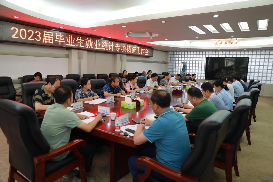 7月14日,我校在行政楼二楼会议室召开2023届毕业生就业统计专项核查工作会。副校长牛晓玉出席会议并讲话,招生与就业指导处、各学院相关负责人参加会议。