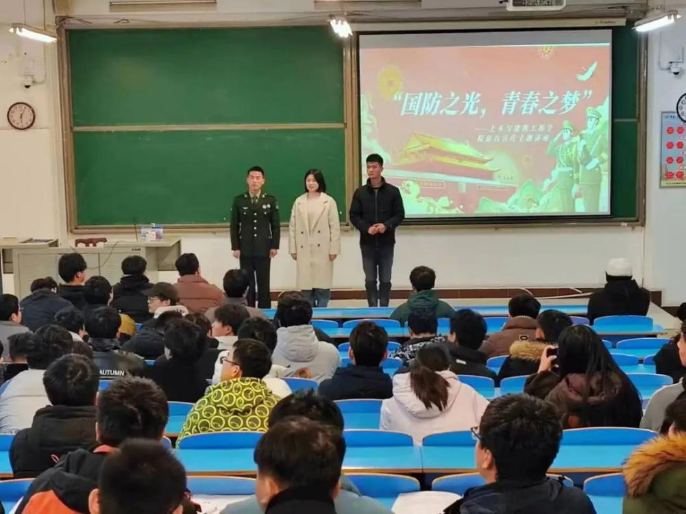 12月26日下午,土木与建筑工程学院在A19-205召开“国防之光,青春之梦”——征兵主题宣讲会。学院党总支副书记李丹,团总支书记、毕业班辅导员及100余名同学参加,辅导员闫瑞雪主持会议。
