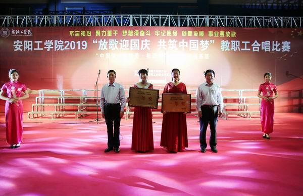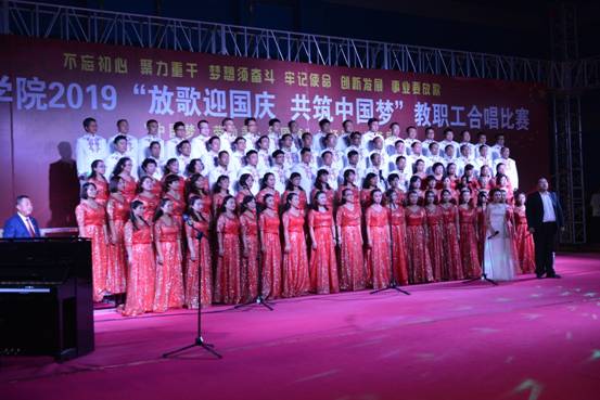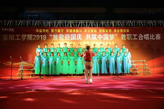 为庆祝中华人民共和国成立七十周年,奏响新中国奋斗交响曲,高唱新时代奋斗者之歌,9月25日下午,安阳工学院隆重举行“放歌迎国庆,共筑中国梦”教职工合唱比赛。校领导任中普、景国勋、孙保平、吴建军、万鹏杰、蒋文龙、郭秋平、李凯灿、牛晓玉、牛瑞庆出席活动,并与学校各部门师生代表2000余人观看了比赛。