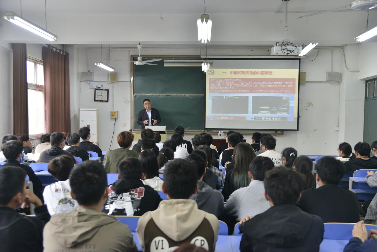 4月13日下午,副校长李凯灿在A09-304教室为计算机科学与信息工程学院2022级网络工程专业和土木与建筑工程学院建筑学专业80余名学生讲授思政课。