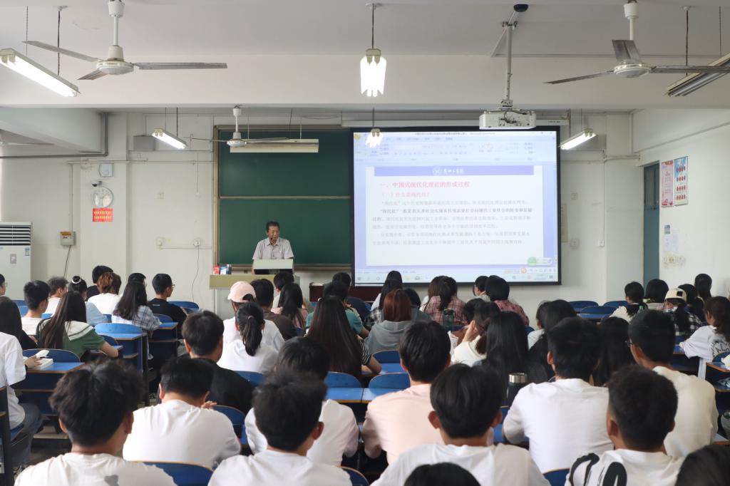 蒋文龙围绕“中国式现代化理论的形成过程、中国式现代化理论的创新成果、中国式现代化理论的指导意义”三个方面,进一步深化了同学们对中国式现代化的内涵和本质的认识。他强调,中国式现代化理论具有鲜明的独立自主性、鲜明的中华底色、鲜明的天下情怀,是中华民族伟大复兴的科学指南、是21世纪科学社会主义的创新成果、是发展中国家实现现代化的有益借鉴、是破解人类发展难题的钥匙。