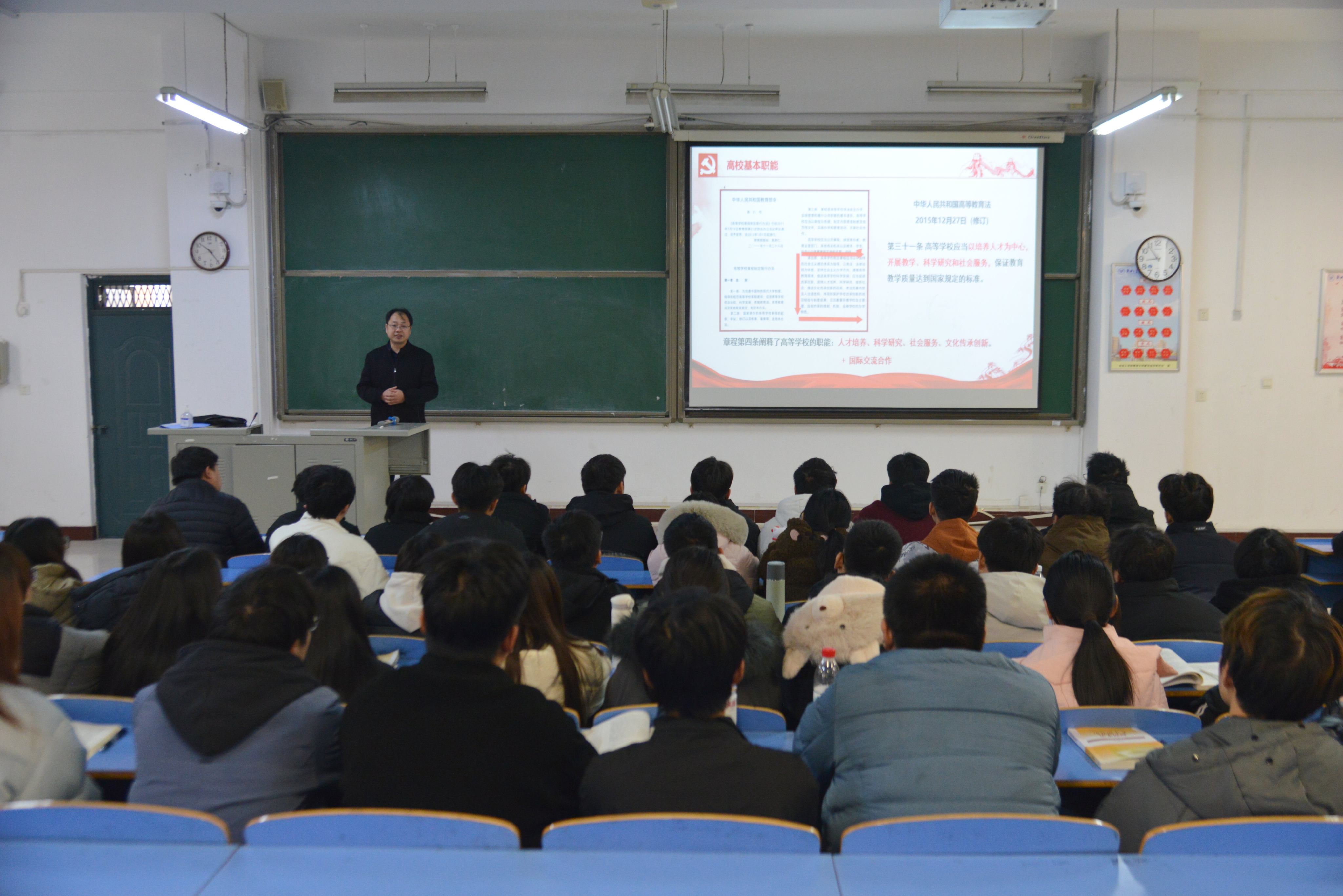 12月10日,副校长刘林以《大学基本职能与立德树人》为题,为化学与环境工程学院2023级化学工程与工艺专业学生讲授思政课。