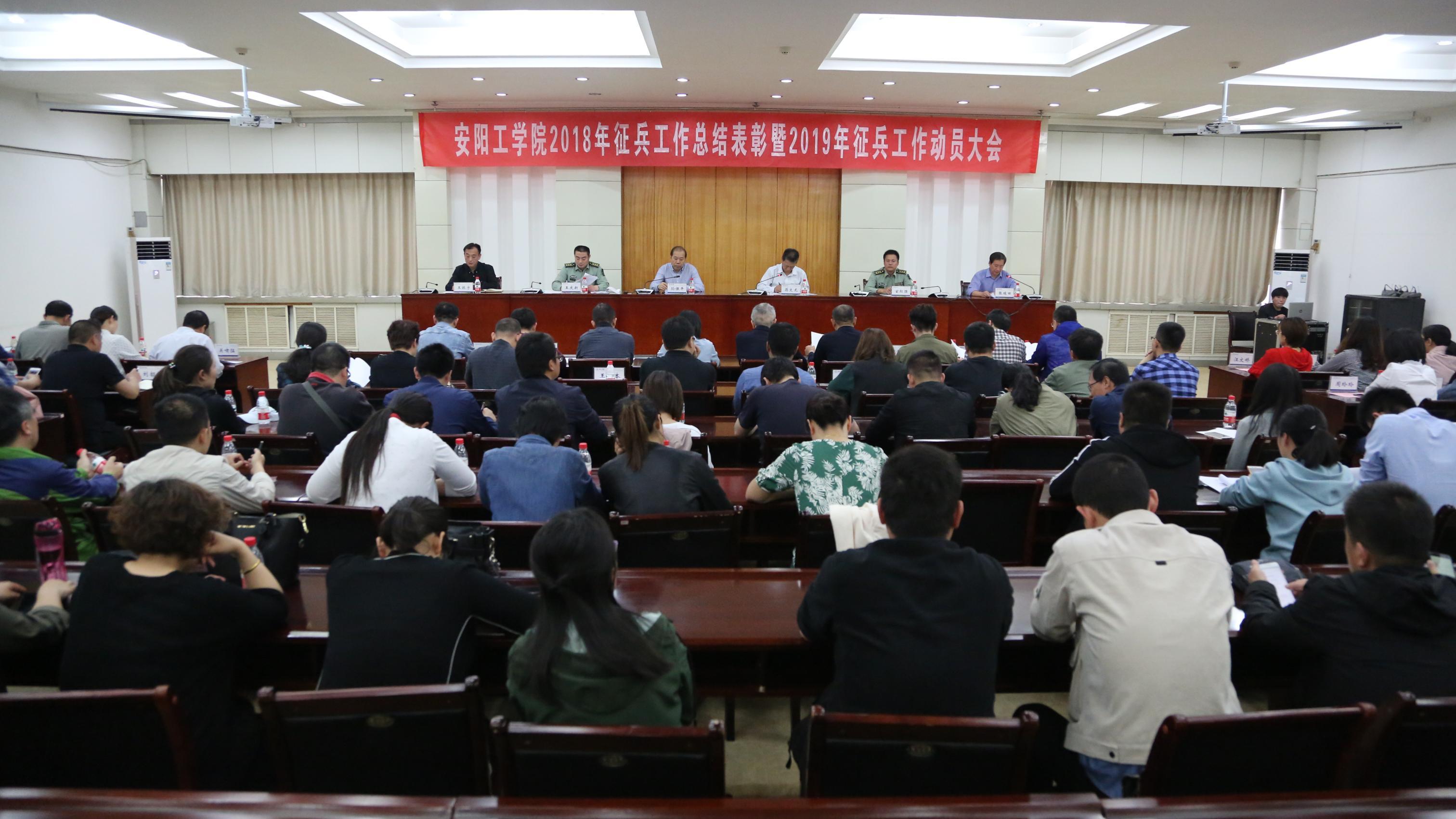 5月14日下午,我校在行政楼四楼会议室召开2018年征兵工作总结表彰暨2019年征兵工作动员会。安阳军分区动员处处长王庆新、安阳市文峰区武装部部长玄红强、我校党委副书记孙保平、副校长蒋文龙出席,宣传部、学工部(学生处)、武装部(保卫处)、团委、教务处等相关部门负责人、各学院党总支书记、副书记,团总支书记及全体辅导员参加会议。副校长蒋文龙主持会议。