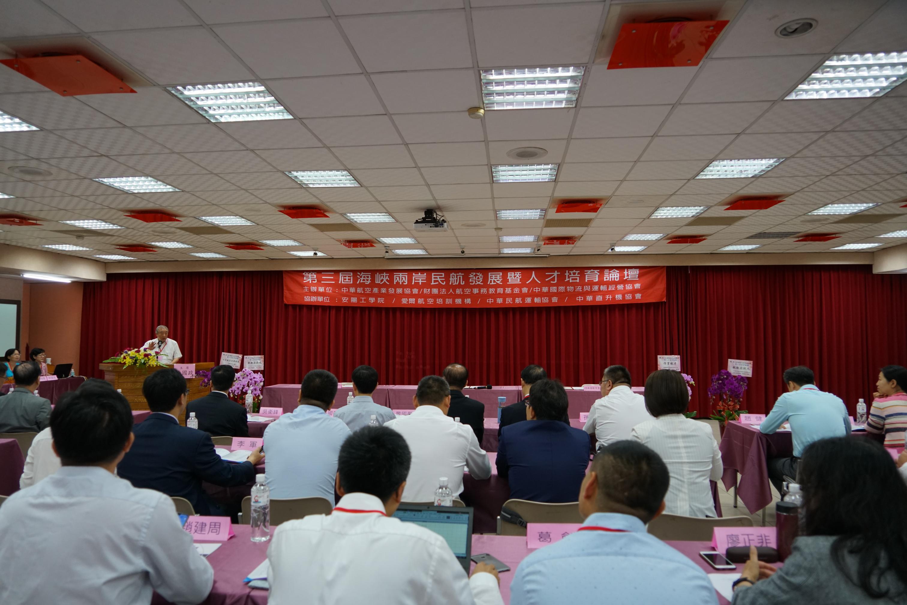5月21日上午,由中华航空产业发展协会、财团法人航空事务教育基金会等主办、我校和爱尔培训机构等协办的第三届海峡两岸民航发展暨人才培养论坛在台北剑潭活动中心隆重开幕。台湾前经济部门负责人、台湾中华大学讲座教授尹启铭,台湾前民航部门负责人、财团法人台湾航空事务教育基金会董事长张国政,台湾飞行安全基金会顾问李万里,台湾中华航空运输协会理事长祝如竹,我校校长景国勋等出席论坛开幕式。来自大陆的中国民航管理干部学院、河南省航空业协会、郑州航空工业管理学院、广州民航职业技术学院、上海民航职业技术学院、厦门思凯兰航空学院和来自台湾中华航空产业发展协会、台湾中华大学、台湾中华科技大学、台湾淡江大学、财团法人台湾航空事物教育基金会、爱尔航空培训机构等海峡两岸教育界、航空界与产业界的76余家单位近130余名专家、学者、企业家代表参加开幕式。论坛开幕式由张国政主持。