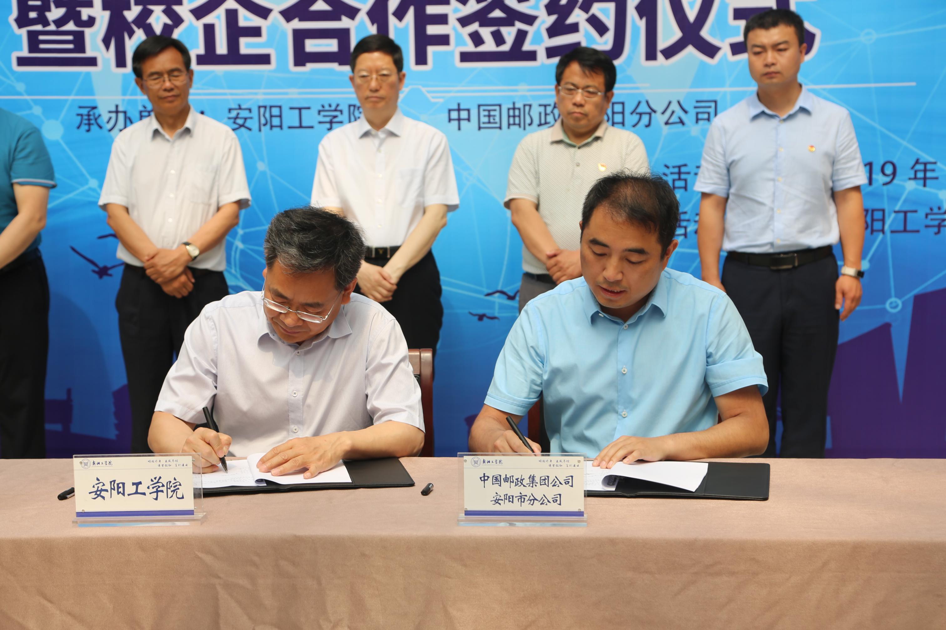 随后,郭秋平与王付平分别代表我校和中国邮政集团公司安阳分公司共同签订了《安阳工学院与中国邮政安阳分公司校企合作协议》。