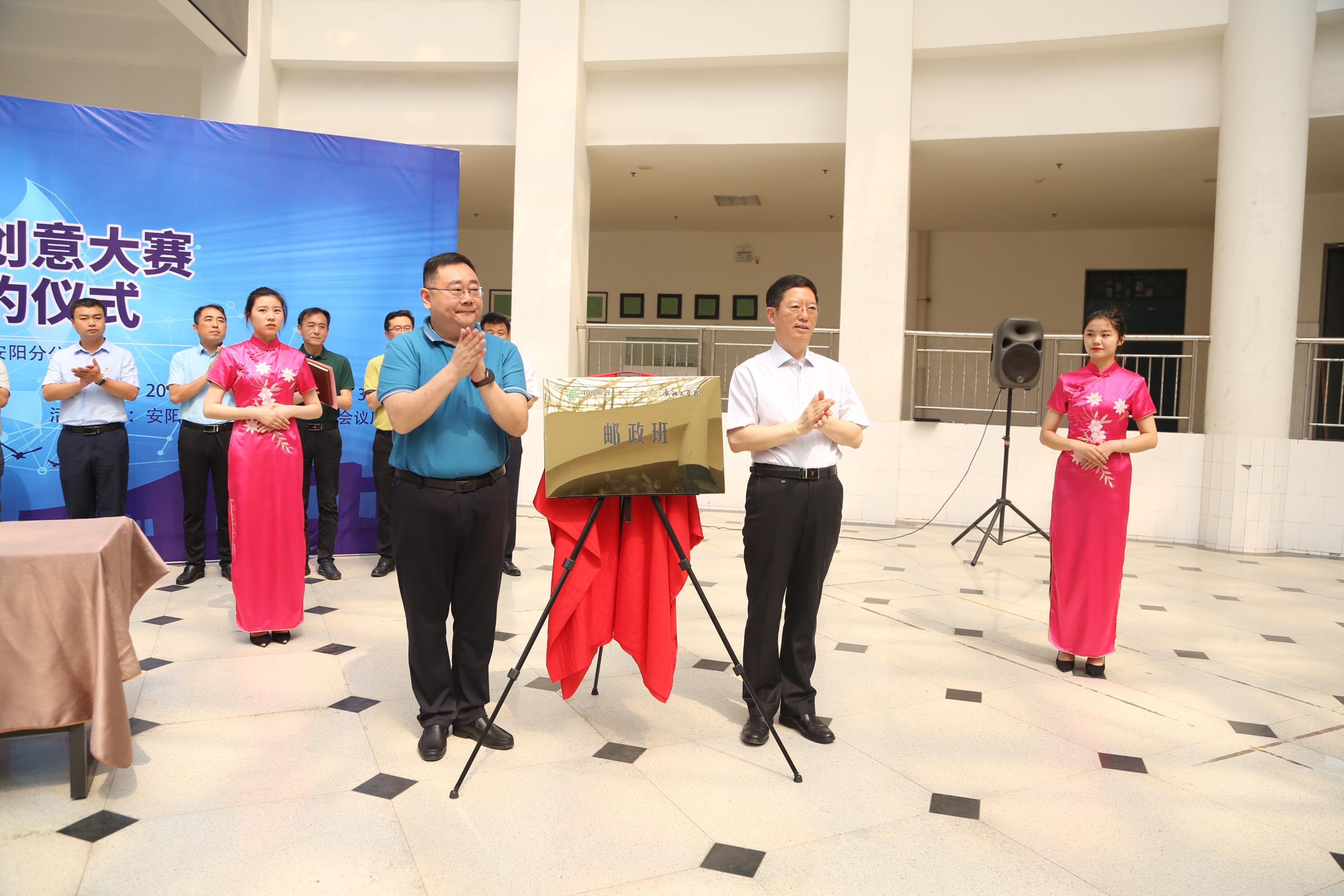 校长景国勋和中国邮政集团公司安阳分公司总经理程豪岭共同为“邮政班”开班揭幕。