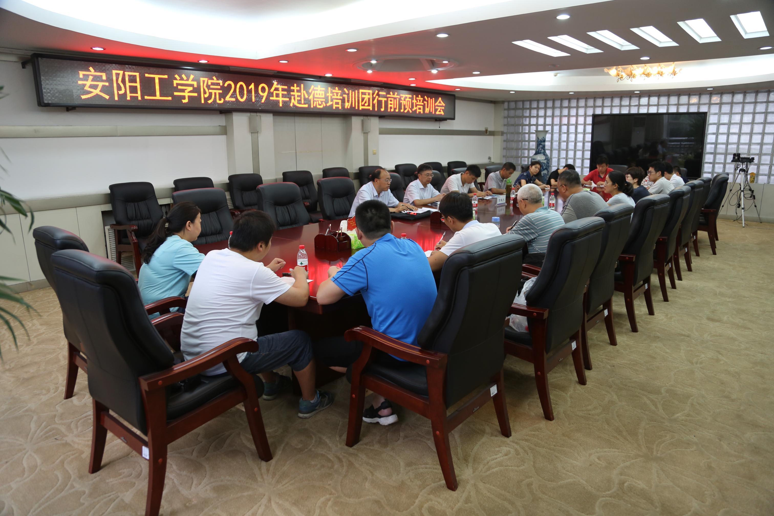 7月25日上午,我校在行政楼二楼会议室召开2019年赴德培训团行前预培训会议,副校长万鹏杰出席,河南省科技厅出国培训管理处处长张天运应邀作专题培训报告,我校即将赴德国执行“高档数控机床与智能制造技术(第三期)”培训任务的25名教师参加会议。