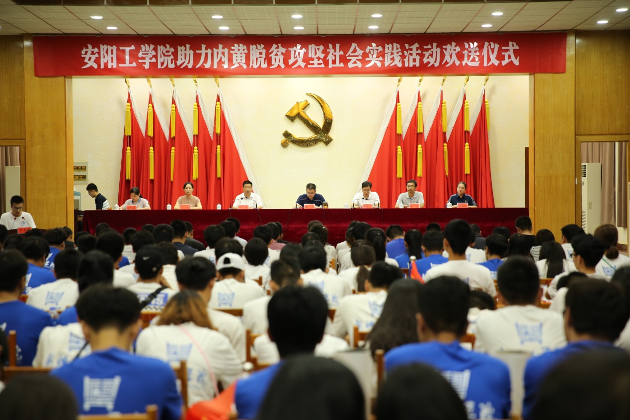 8月3日上午,安阳工学院助力内黄脱贫攻坚社会实践活动欢送仪式在内黄县县委一楼大会议室隆重举行。内黄县县委副书记谢东,安阳工学院副校长牛晓玉,我校土木与建筑工程学院院长、内黄县常委、副县长阎利出席,科研处、校团委等相关负责人、内黄县脱贫攻坚指挥部、共青团内黄县委负责人,各乡镇主抓扶贫工作的副职、团委书记,我校指导老师代表和161名大学生志愿者参加仪式,阎利主持仪式。