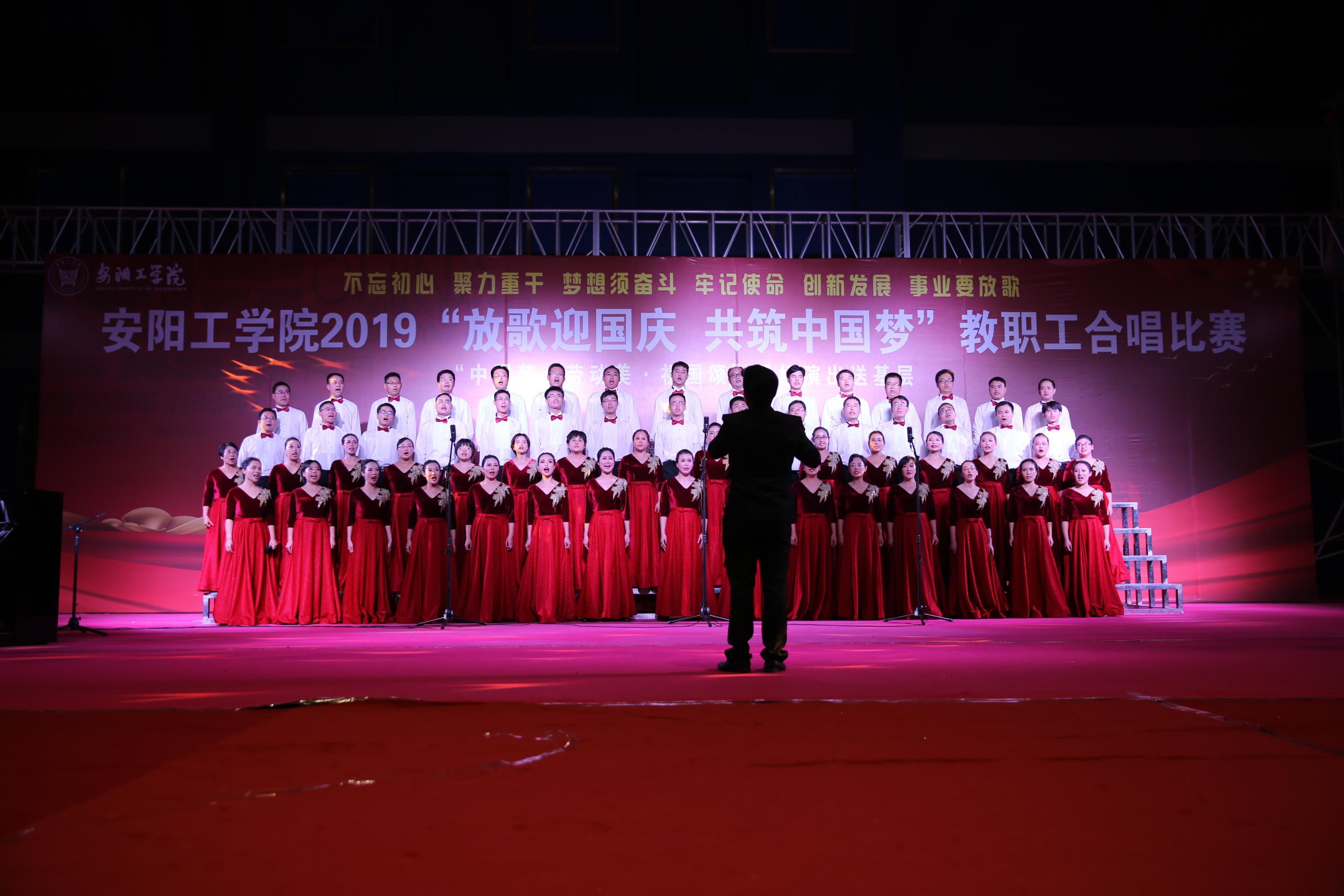 为庆祝中华人民共和国成立七十周年,奏响新中国奋斗交响曲,高唱新时代奋斗者之歌,9月25日下午,安阳工学院隆重举行“放歌迎国庆,共筑中国梦”教职工合唱比赛。校领导任中普、景国勋、孙保平、吴建军、万鹏杰、蒋文龙、郭秋平、李凯灿、牛晓玉、牛瑞庆出席活动,学校各部门师生代表2000余人观看了比赛。