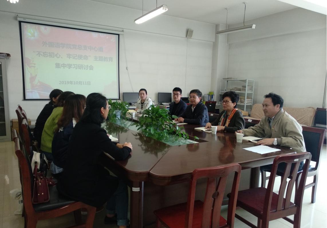 10月11日上午,副校长万鹏杰参加了外国语学院中心组“不忘初心、牢记使命”主题教育集中学习研讨会,外国语学院党总支副书记何莎莎主持会议,中心组全体成员参加会议。