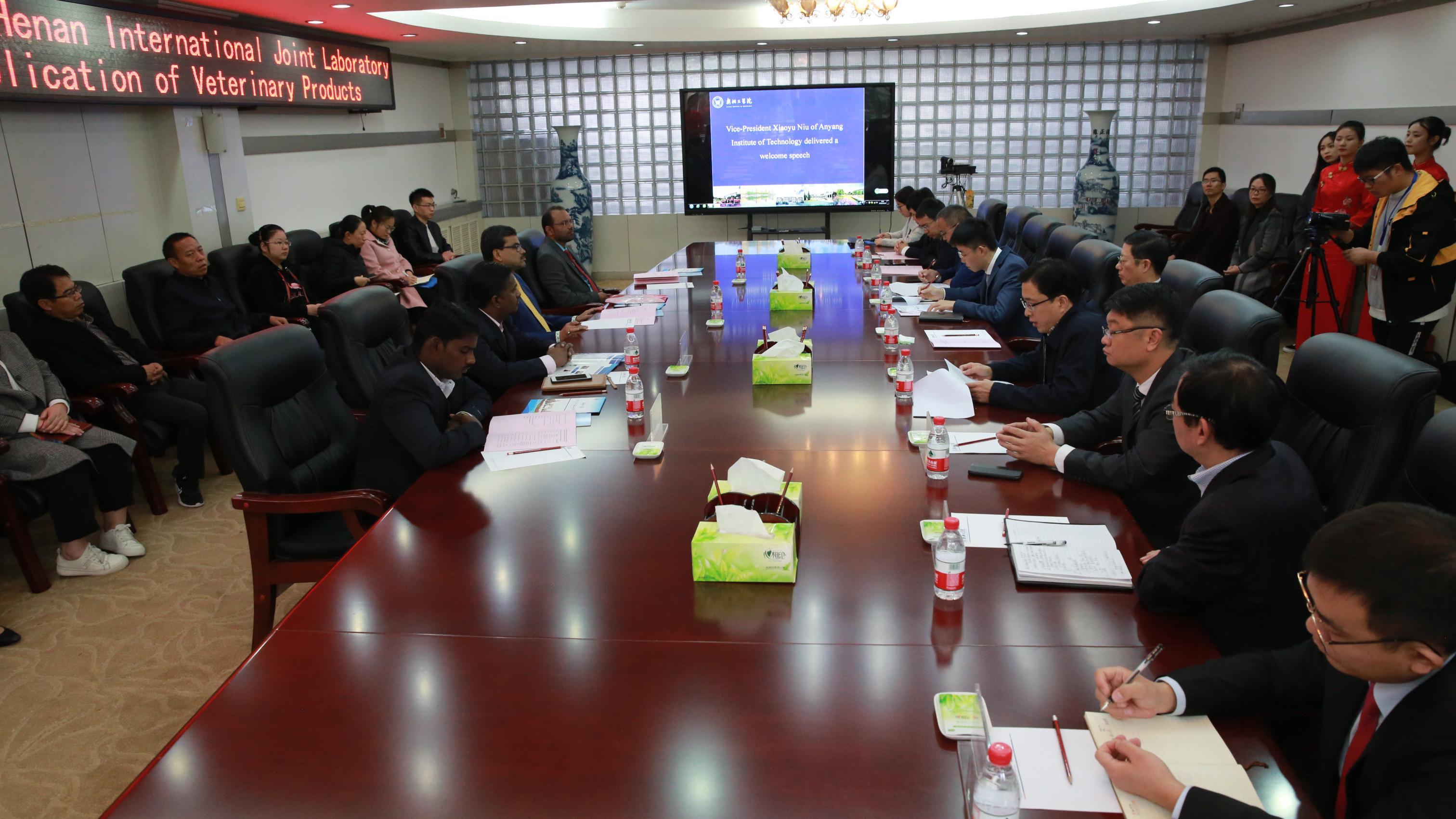 会议结束后,嘉宾一行在生物与食品工程学院副院长张坤朋的陪同下,参观了河南省兽用生物制品研发与应用国际联合实验室、艾草展览馆、食品检测中心。双方表示以后将加强交流,加强互访,深入合作,促进河南省兽用生物制品研发及应用国际联合实验室的健康快速发展,使实验室成为连接安阳工学院和印度高校的友谊桥梁、合作桥梁、发展桥梁!
