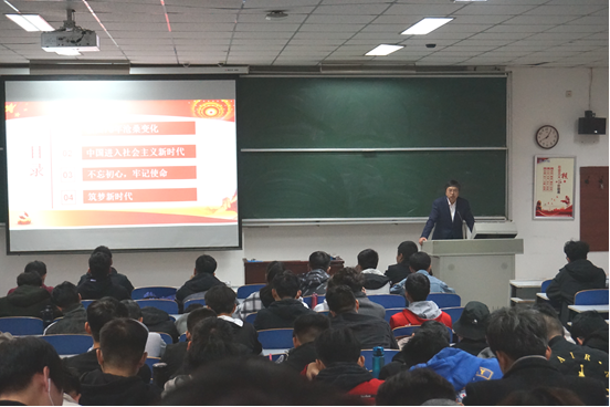 11月7日上午,副校长万鹏杰以《不忘初心铸辉煌,牢记使命再出发》为题,为国际教育学院2019级150余名新生上了一堂生动有趣的思想政治课。