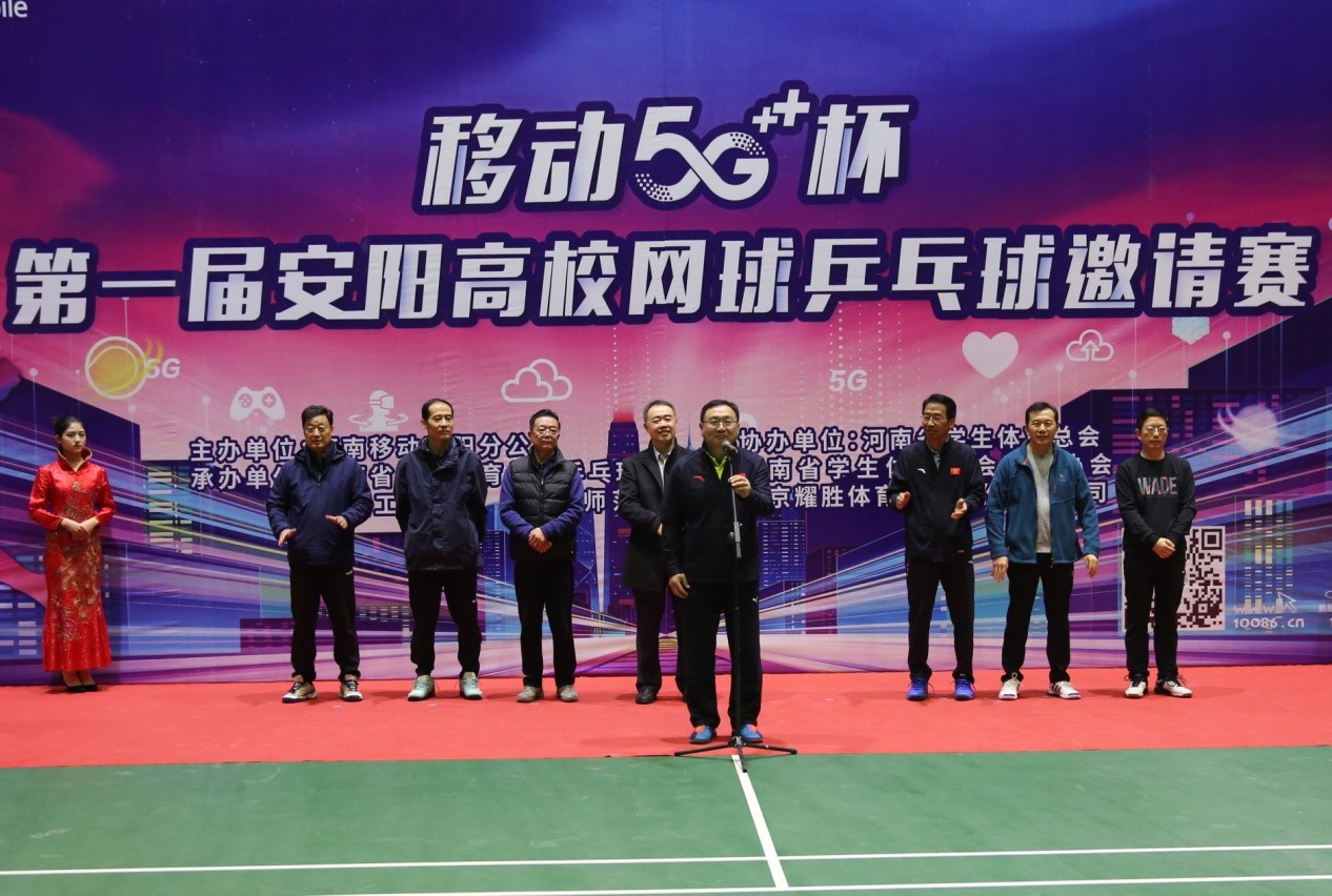 11月9日上午,由河南移动安阳分公司主办,河南省学生体育总会协办、河南省学生体育总会网球协会、河南省学生体育总会乒乓球协会、安阳工学院、安阳师范学院、北京耀胜体育产业股份有限公司承办的“移动5G杯”第一届安阳高校网球乒乓球邀请赛在我校举行。