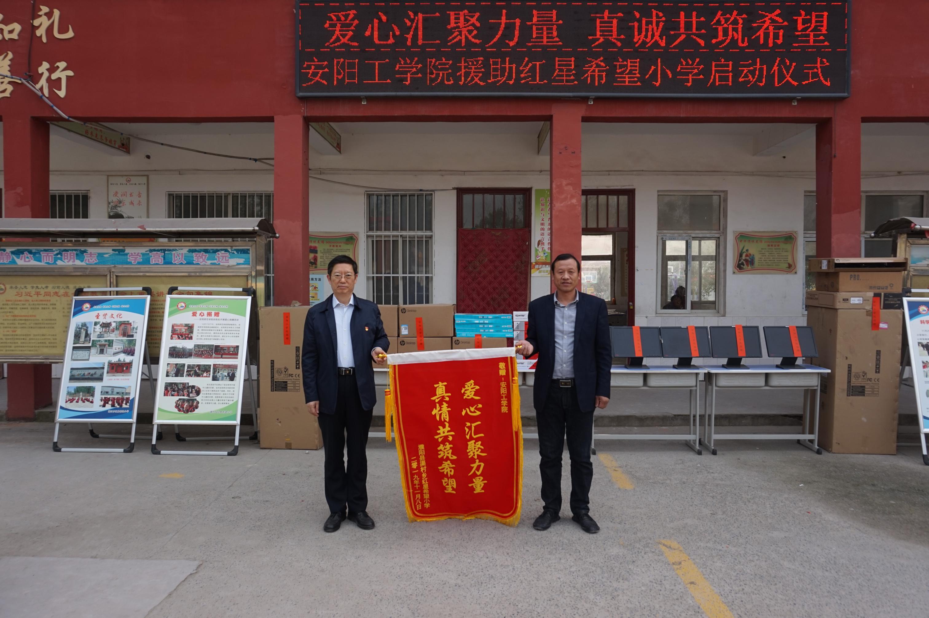 校长景国勋代表学校向红星希望小学捐赠电脑等物资