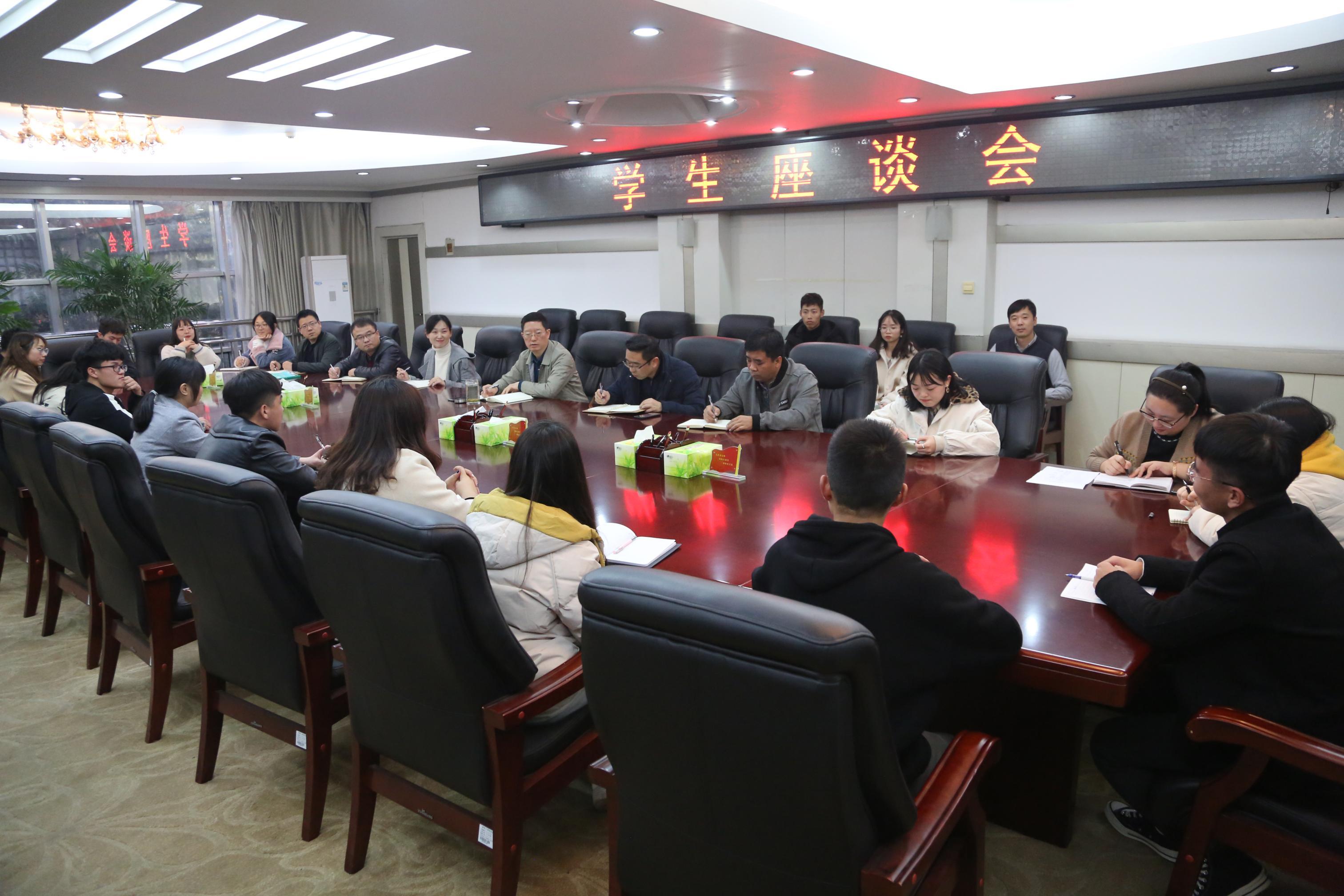 11月21日下午,校长景国勋在行政楼二楼会议室主持召开学生座谈会。校办、学生处、团委、教务处、后勤处等相关部门负责人以及各学院20余名学生代表参加座谈。