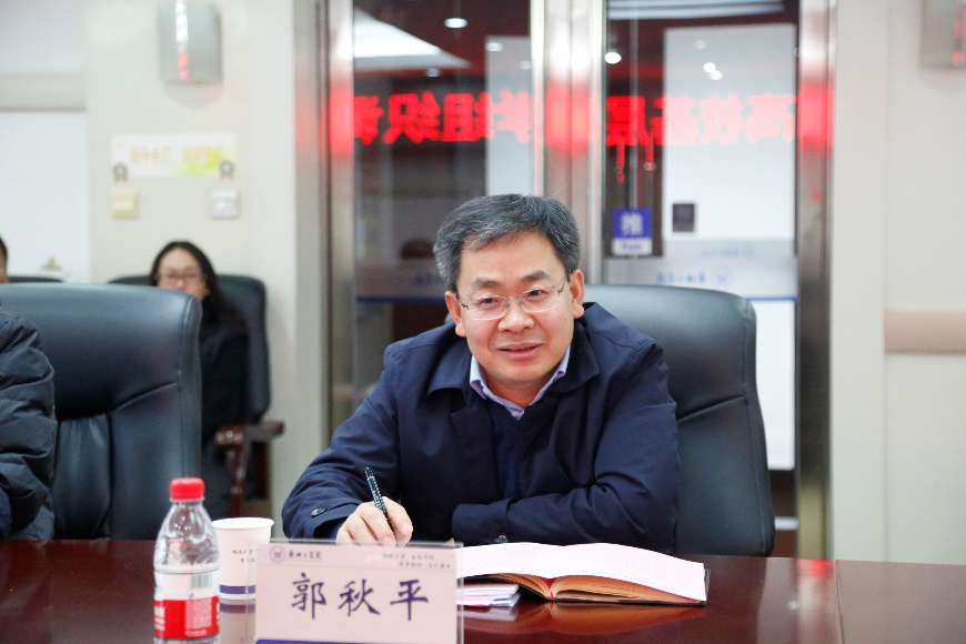 郭秋平首先代表学校致辞,对调研组的到来表示欢迎,对调研组专家的实地调研指导表示诚挚感谢。他围绕我校“是一所不太大不太强,却有优势和特色的大学;是一所不太优秀不太卓越,却有执著追求有光点亮点的大学;是一所受传统文化影响深厚朴实务实低调内敛,却需进一步传承创新扩大宣传和开放的大学”等三个方面介绍了我校的基本情况,并就我校采取“十百千品牌提升计划”、“百千万英才提升计划”、“课堂教学20条”等措施使基层教学组织“活起来”、“强起来”、“实起来”的做法进行了简要介绍。