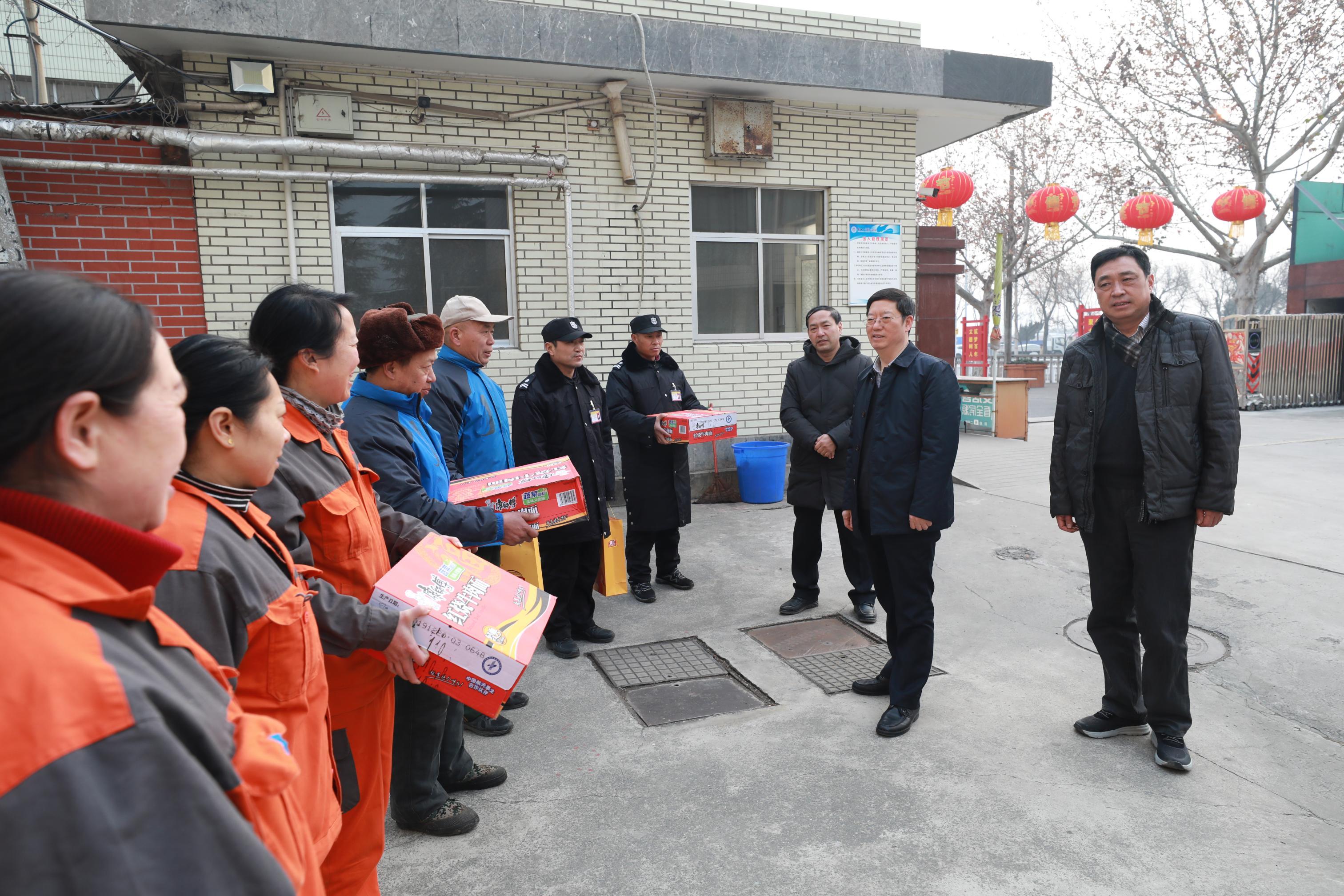1月14日上午,校长景国勋、副校长李凯灿一行走访慰问了翟雁等优秀教师代表,并深入保卫处、后勤管理处、洹滨校区等基层部门,慰问了春节期间坚守岗位的教职员工。校办、人事处、保卫处、后勤管理处、洹滨校区等相关部门负责人陪同参加慰问。