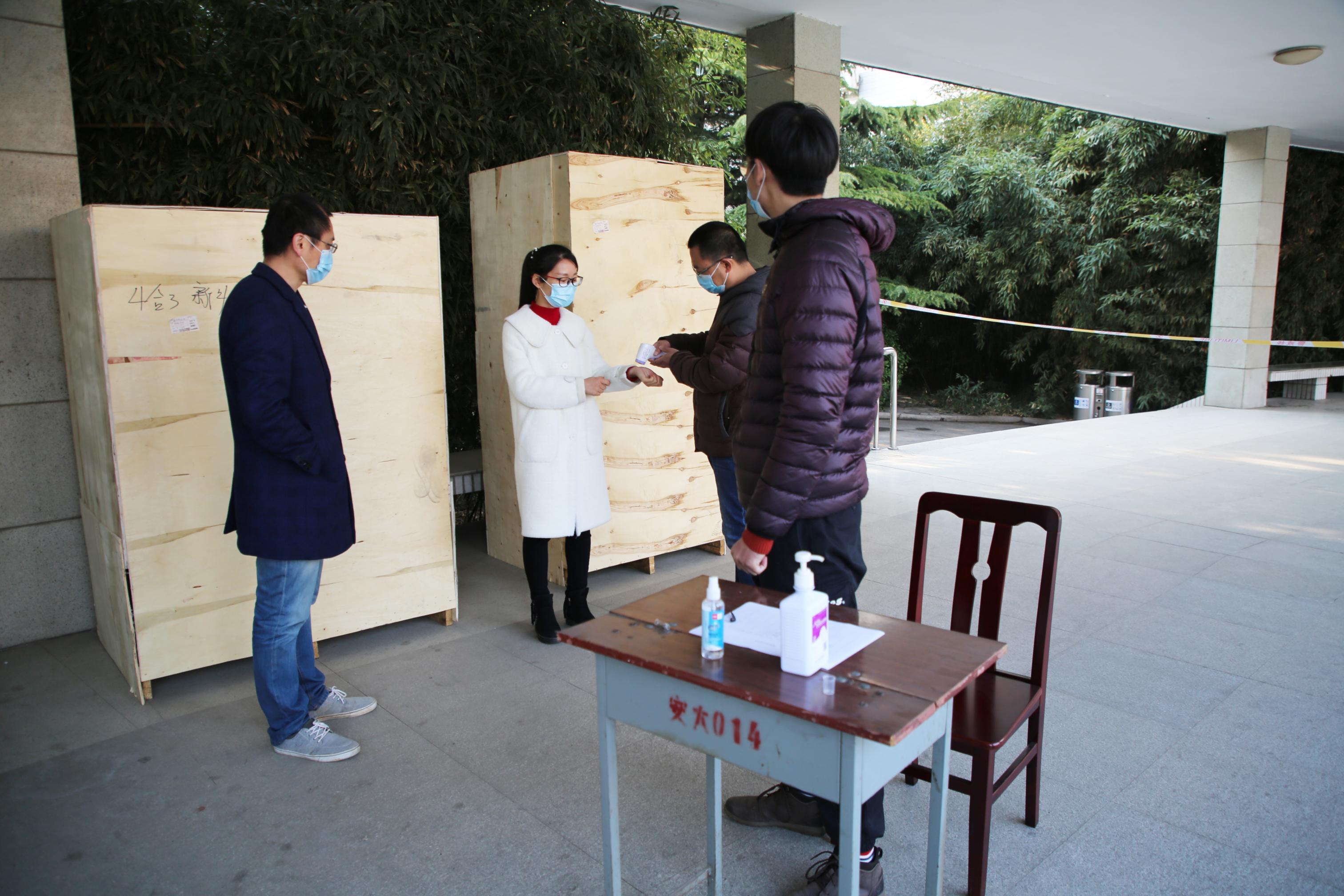 对返校入住宿舍的“学生”(由教职员工临时客串)进行信息审核