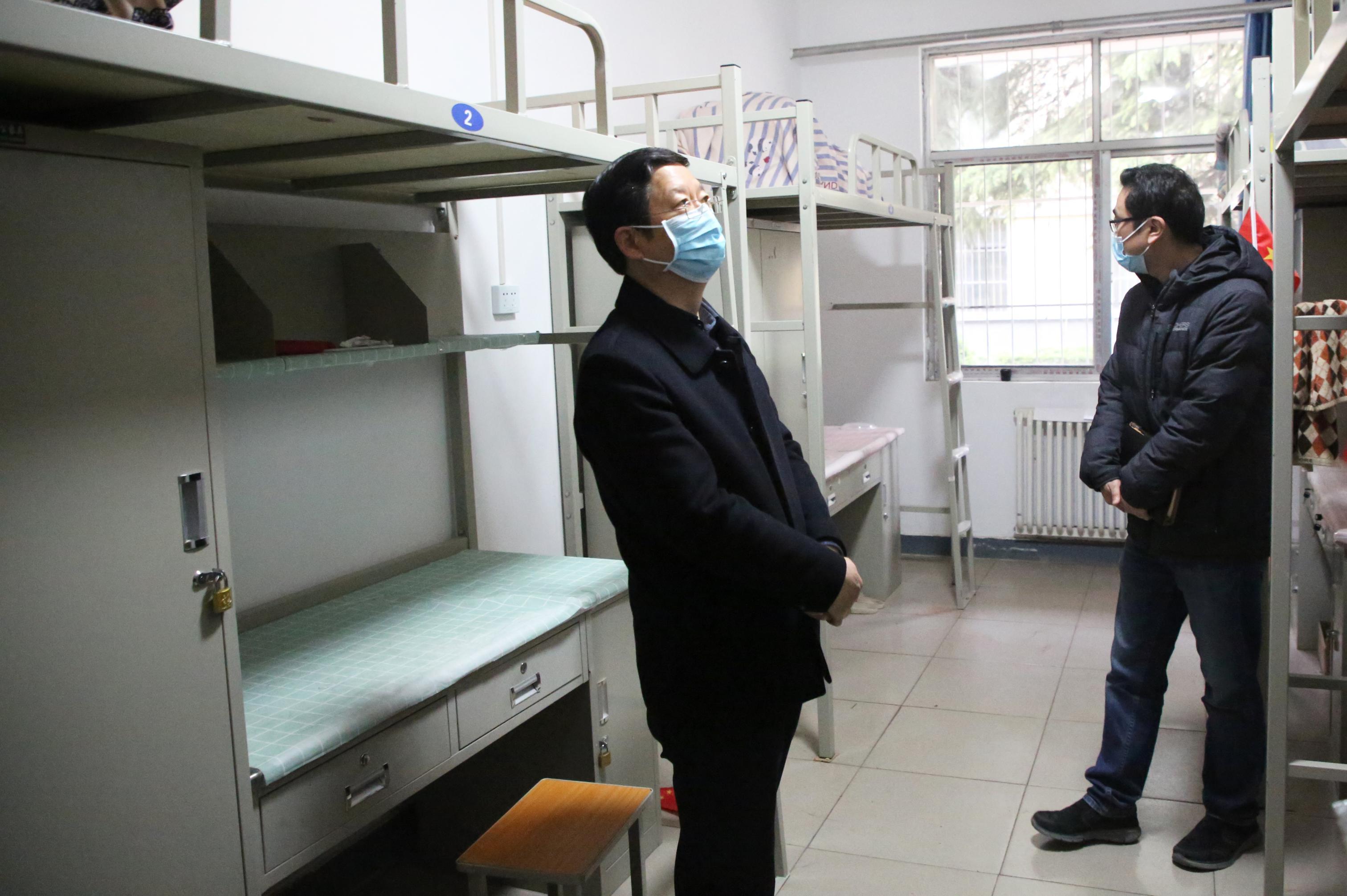 4月9日下午,校长景国勋,副校长郭秋平、李凯灿到我校继续教育学院(洹滨校区)检查指导疫情防控和开学准备工作,校办、洹滨校区等部门负责同志陪同检查。