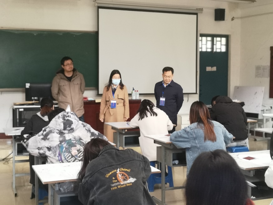 受疫情影响,上学期期末公修课考试延期到本学期进行。为进一步加强考风考纪督查,严肃考试纪律,维护考场秩序,3月21日,副校长郭秋平带领教务处、教学研究与评估办公室等相关部门负责人到各考场进行巡回检查。